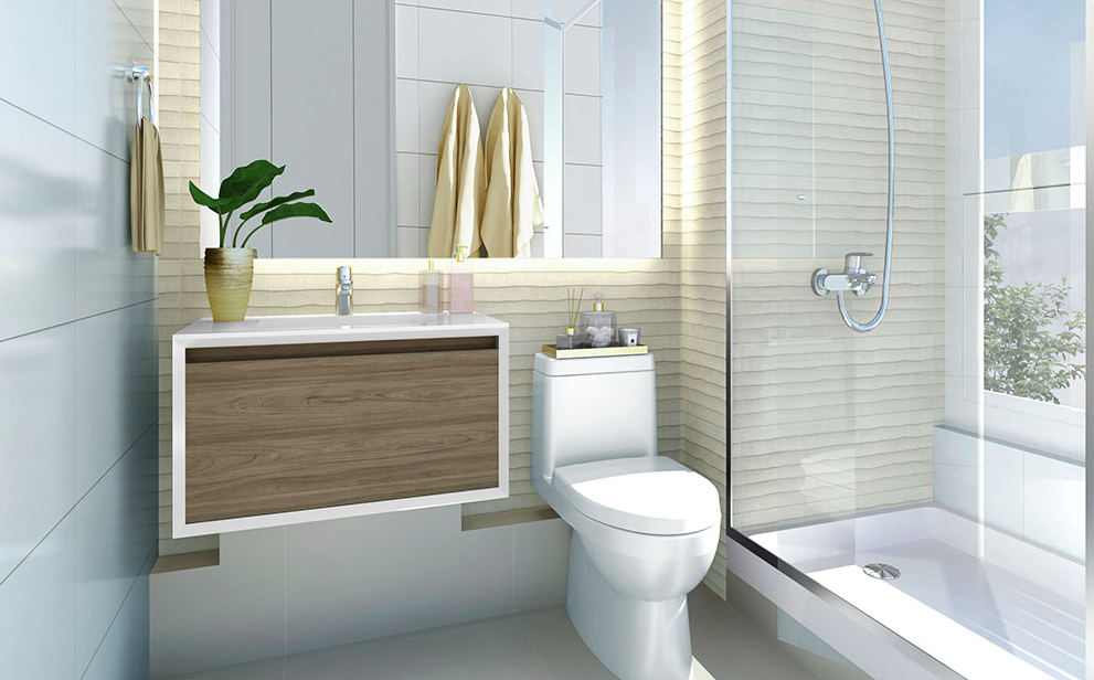 Baño con piso de porcelanato
