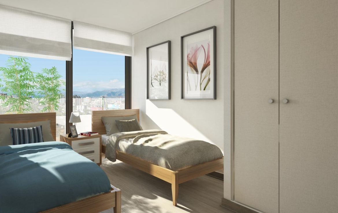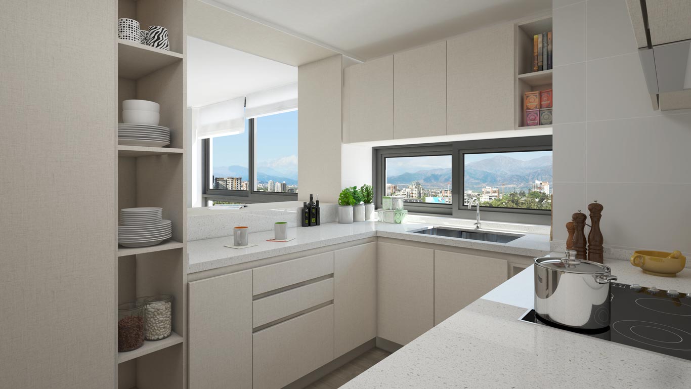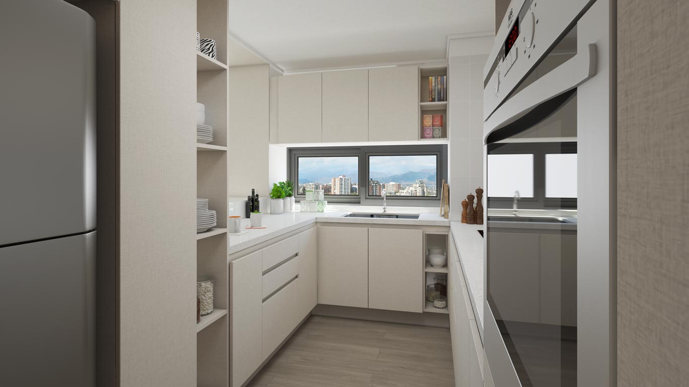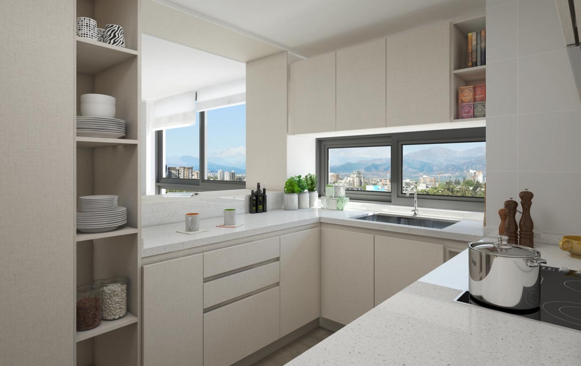Destaca por la innovadora arquitectura de las cocinas de sus unidades, modernos y prácticos espacios, con terminaciones de primer nivel y la inclusión de oficinas o salas multipropósito.